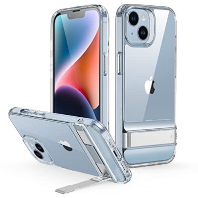 The ESR Metal Kickstand Case is a sleek and protective iPhone case that offers three stand modes for hands-free viewing, military-grade drop protection, and support for wireless charging. The highly adjustable kickstand allows you to choose any angle up to 60 degrees, while the shock-absorbing corners, raised screen edges, and camera guard provide test-certified protection. The case combines soft polymer sides for a comfortable grip with a tough acrylic back that resists scratches and stays crystal clear. It is only compatible with iPhone 14 and iPhone 13 and comes with complete customer support, including setup videos, a 12-month warranty, lifetime support, and personalized help.