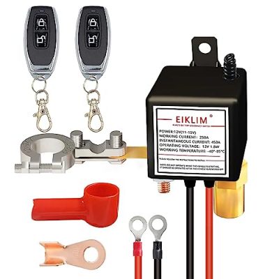 The DIKJAK Remote Battery Disconnect Switch is a convenient and anti-theft solution for vehicles. With the remote control, you can easily shut down the battery without having to open the hood, preventing the battery from dying when not in use. The installation is simple, and it comes with all the necessary parts for both positive and negative side installation. It offers stable and reliable performance, protecting the battery from dying during long periods of inactivity and ensuring that you can start the engine when needed. This switch is widely applicable to cars, trucks, RVs, and more. Its compact size allows it to fit into narrow spaces easily. The switch has a continuous rated current of 250 amps and works at 12V. It operates in temperatures ranging from -40 degrees to 85 degrees. Overall, the DIKJAK Remote Battery Disconnect Switch offers convenience, security, and peace of mind.