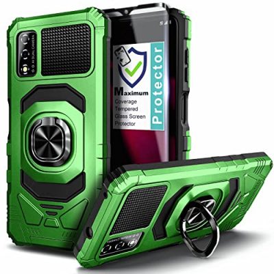The NZND Case for T-Mobile REVVL V is a full-body protective cover designed specifically for the 6.52" 4G / LTE 2021 version of the REVVL V. It provides military-grade protection against drops, shocks, and dust with reinforced corners for extra durability. The case features a built-in magnetic ring holder, which can be used as a finger holder or stand for convenient viewing angles. With precise cut openings, all buttons and ports are easily accessible, and the raised bezel lifts the camera off flat surfaces to prevent scratches. The case is available in a stylish green color and comes with a tempered glass screen protector. With professional nationwide shipping and services, NZND Industries Inc ensures a satisfying buying experience. Score: 7