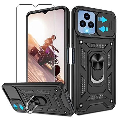 The T-Mobile Revvl V Plus 5G Case by Atump offers solid protection and functionality. Its military-grade shockproof design and sliding camera cover make it a great choice for sports and outdoor activities. The 360° rotating kickstand ring provides convenient hands-free viewing of movies and videos. Although the plastic circle holding the oval ring can crack, overall, the case is sturdy and fits well. The included screen protector is a bonus, but it is thin and prone to bending. The camera door doesn’t stay closed securely, and the case cannot be used with a magnetic holder. Despite these minor drawbacks, this case is a good option for T-Mobile Revvl V Plus 5G users seeking reliable protection.