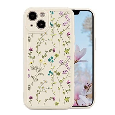 The RALEAVO Floral Case for iPhone 13 is a stylish and cute phone cover designed for girls and women. It features an elegant floral pattern with wildflowers and branches embossed on the back, making your phone attractive and unique. The soft silicone material makes it slim and lightweight, allowing for easy installation and removal. The case provides reliable drop protection with its precise cut to fit and slightly raised edges. It is compatible with wireless charging and is suitable as a gift. This beige-colored case is designed specifically for the iPhone 13 with dimensions of 5.51Lx4.72Wx0.79H. With a customer rating of 4.4/5, users appreciate its good quality and cute design.