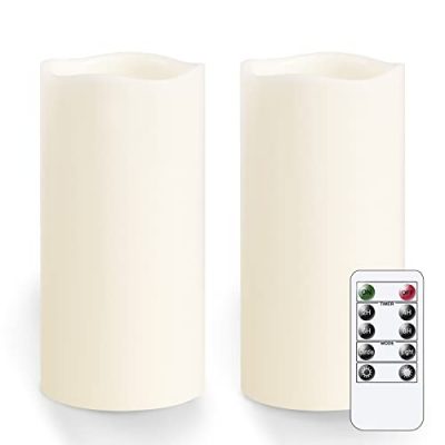 The Homemory 6” x 3” Outdoor Waterproof Flameless Candles are a perfect addition to your indoor or outdoor space. These flickering LED pillar candles are designed with a waterproof feature, making them more realistic and reliable without worrying about melting or rain. The candles have a 3D wick and a waterproof treatment on the top and base, simulating rainwater flowing from top to bottom. They come in an ivory plastic shell that becomes transparent when the light is on. With the convenient remote control, you can easily set timers or adjust the light modes and brightness. These battery-operated candles provide all the benefits of traditional candles without the negatives, such as no dripping-hot wax or smoke. Each set includes 2 outdoor candles, a remote control, and user manual. Enjoy the ambiance of these waterproof fake plastic candles with a customer rating of 4.6/5.