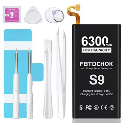The FBTDCHOK Upgraded Galaxy S9 Battery is a high-quality replacement battery for the Samsung Galaxy S9. With a capacity of 6300mAh, this battery offers a long-lasting power supply and is made from advanced lithium polymer battery cells. It is compatible with various Galaxy S9 models and features multiple protection mechanisms to ensure safe and efficient usage. This battery is also certified with ILAC ISO 17025 and UL 2054, guaranteeing high quality and reliability. With over 1000 charging cycles, it provides a day of vitality for your phone. The FBTDCHOK Upgraded Galaxy S9 Battery comes with a full replacement kit and offers a 30-day refund policy and 24-hour customer service.