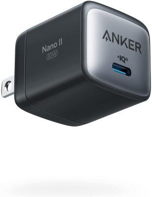 Our first pick when it comes to wired chargers for iPhone 13 is Anker’s Nano II. Small at just 1.25×1.2×1.5 inches, it is a great travel charger that supports high-speed charging for up to 30W. While there are also 45W and 65W versions, the 30W version is more than enough for the iPhone 13 Pro Max’s 27W maximum fast charge. The one negative aspect of the Nano II is how the 30W version’s plug prongs do not fold or retract into the charger’s body.
