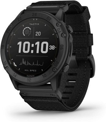 The Garmin Tactix Delta Solar really is one of the best tactical smartwatches out there. Not only does it match military standards, but it also goes several leagues further with an integrated user “kill switch” that automatically deletes any data on the device. Other features include specialized modes like Jumpmaster (for parachuting), stealth (turns off GPS positioning and wireless connectivity), and night vision (can be read with night vision goggles).