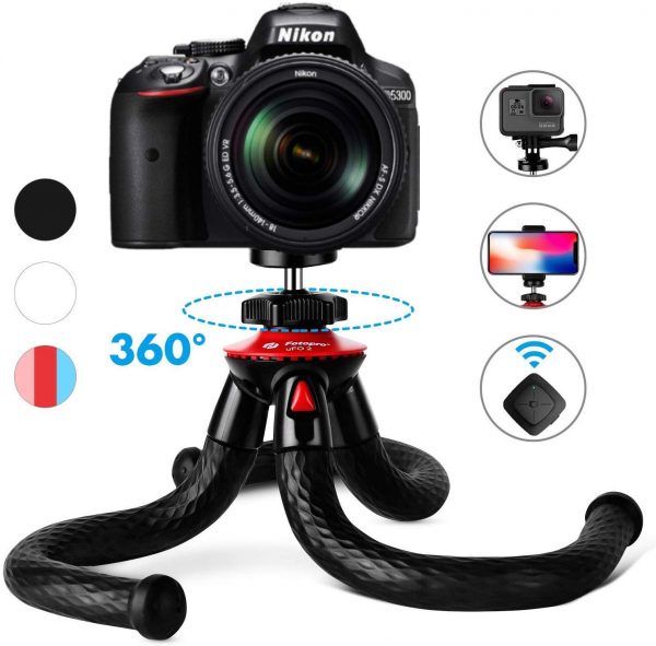 The Fotopro tripod is completely waterproof and durable. You can put it through any weather and adventure and it would still be functional. The legs are fully adjustable so you can get any angle you want. You can bend or twist the legs as much as you want and it will remain sturdy on any surface. For a durable choice, check out the Fotopro Waterproof Tripod.