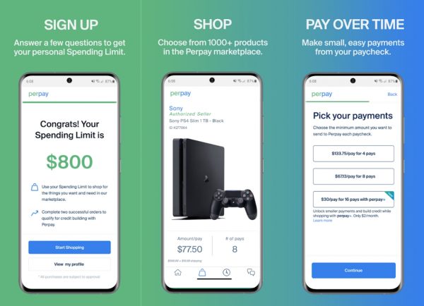 Perpay approached “buy now, pay later” a bit differently. Unlike other apps, Perpay will determine your starting spending limit when you sign up. From there, you can spend your credits on items that they have in their marketplace. Your spending limit will gradually increase as you use the platform.