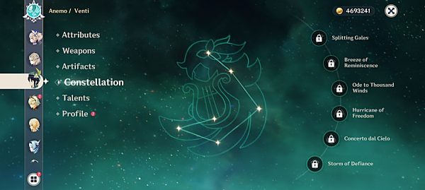 Like the other characters in Genshin Impact, Venti has six (6) constellations. Venti’s constellation is the Stella Fortuna which you can obtain by getting duplicate characters in wishes.