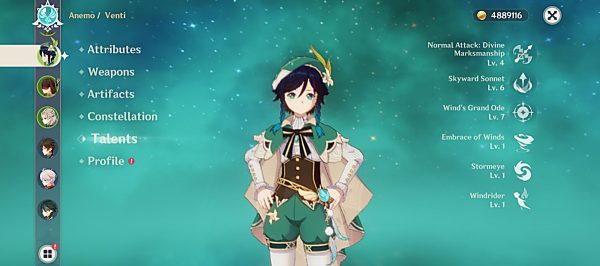 Character ascension is an essential element of building a character. In a Venti Genshin Impact build, talents and skills will unlock at certain ascension phases. Maxing out a character unlocks all the character’s talents and increases their level cap.
