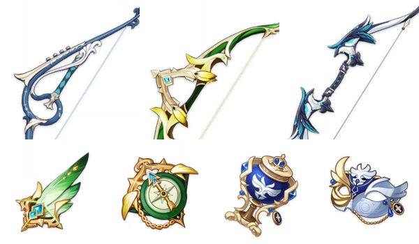 In terms of weapons, the 5-star Skyward Harp is the best weapon for him. However, if you cannot obtain the Skyward Harp, the 4-star Stringless is a close substitute for it. The Skyward Harp increases the user’s Crit Damage by 20% and has the potential to inflict an AoE attack that can deal up to 125% Physical Attack Damage. Stringless increases Venti’s Elemental Skill and Elemental Burst Damage by 24%. You can obtain both weapons from Wishing for them at any of the available banners.