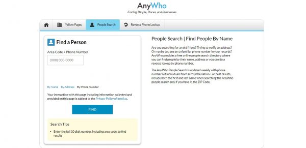 AnyWho helps users find people, places, and businesses with the use of Yellow Pages. It’s a reverse phone lookup service that provides quick and free results. All you will need to be able to perform a search on their website is the Area Code + Phone Number that you’re trying to find. Their records are updated weekly so you’ll be able to access reliable results. That said, you’ll only be able to find the name and the location of the owner which is great if you’re not looking to access information that’s too specific.