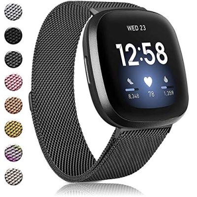 The Amzpas Bands are designed to be compatible with Fitbit Versa 3 and 4, as well as Fitbit Sense and Sense 2. They offer a stylish and comfortable woven mesh stainless steel design with a magnetic clasp for easy installation and secure fit. These bands are available in small and large sizes, and come with a 12-month warranty.