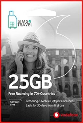 The $49 Sims4Travel Data Prepaid Vodafone Data Plan offers 25GB of 4G/5G roaming data for use in 70+ countries worldwide, including the Caribbean, Mexico, Canada, and Europe. It's versatile, easy to set up, and avoids hidden costs. The SIM card has no expiry, and is activated via the Sims4Travel website. While it has been positively reviewed for good connectivity and customer service, complaints highlight issues with international usage and refusals to work in some countries.