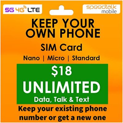 The SpeedTalk Mobile SIM Card Kit offers an affordable and refillable phone SIM card with a $18 monthly plan for unlimited talk, text, and 4GB 5G 4G LTE data. Easy activation and versatile compatibility allowing you to keep your phone number. With top-tier nationwide coverage across the USA and live customer support, it ensures seamless communication on the largest and fastest network. The SIM card comes in a 3-in-1 standard micro nano size and is suitable for diverse devices including cell phones and smartphones. Customer reviews also note its suitability for IoT projects and as a mobile Wi-Fi signal, making it a highly versatile and convenient choice.