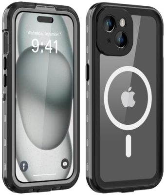 Get ready for any adventure with the SPORTLINK for iPhone 15 Case Waterproof. This full-body protective phone case features an IP68 waterproof rating, as well as military-grade drop protection. The built-in HD screen protector and high touch responsiveness ensure your phone is protected while maintaining functionality. Clear sound quality and compatibility with touch sensitivity provide an impeccable communication and music experience. Designed for iPhone 15 (6.1 inch), this waterproof case comes in sleek black color and meets the MIL-STD-810G standard for shock protection. Perfect for any outdoor activity or everyday use! A great alternative to other expensive waterproof cases.