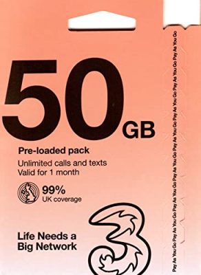 The Three UK New PrePaid Europe SIM Card offers 50GB data, text, and unlimited calls in 71 destinations for a 30-day period. It's compatible with all unlocked phones and allows self activation. The card provides balance details via a simple call, comes with English-speaking support, and works across the UK, EU, USA, Australia, South America, and more. However, despite successful experiences, some customers experienced issues with setting up and using the SIM. It's dimensions are 3.62Lx5.12Wx0.08H. Here's a link to the SIM card: [Three UK New PrePaid Europe UK Three SIM Card](https://www.amazon.com/dp/B09NMQC59X?tag=cellularnewscom-20&linkCode=osi&th=1&psc=1).