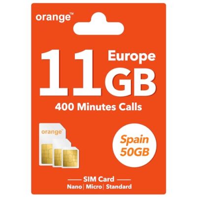 The Orange Europe Prepaid SIM Card offers 11GB of internet data in 4G/LTE in Europe, 50GB in Spain, and 400 minutes of calls for 26 days. It covers 30 countries in Europe and is easy to activate. The SIM card is triple cut (standard/micro/nano) and works for all unlock smart cell phones. However, some customers have reported difficulties with usage and support.