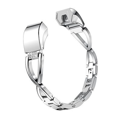 The Ginamart for Fitbit Alta HR and Alta Bands Small Large is a stylish and elegant replacement band for your Fitbit Alta or Alta HR. Made of premium stainless steel with high-tech inlaid diamonds, this band is not only durable but also eye-catching. The creative hollowed-out design with intersecting curves and bling rhinestones adds a touch of uniqueness to your fashion style. With folding multi-links, resizing the band to fit your wrist is quick and effortless. It comes with two stainless steel connectors that securely lock your Fitbit Alta or Alta HR watch in place. Available in a sleek silver color, this band is designed for wrist sizes approximately 5.5 to 7.8 inches.