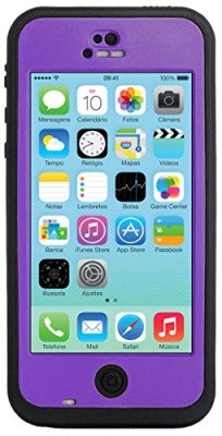 The New Waterproof Shockproof Dirtproof Snowproof Protection Case Cover is designed only for the Apple iPhone 5C, offering complete protection from water, shocks, snow, and dirt. The case is fully submergible to 6.6 feet for 30 minutes and meets or exceeds MIL STD 810F-517 for shock resistance. It also features an IP-69 Ingress Protection Rating for snow and dirt. The case comes in a vivid purple color and has dimensions of 8.00Lx4.50Wx0.80H. Customer rating is at 4.2/5, with praise for its high quality and low price, as well as criticisms related to difficulty in charging and muffled sound. Overall, it is described as a great waterproof case for the iPhone 5C at a reasonable price.