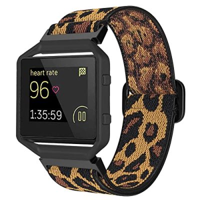 The ESeekGo Elastic Bands are compatible with Fitbit Blaze Watch and cater to both men and women with its adjustable and stretchy design. Made from eco-friendly elastic nylon braided material, these bands are comfortable, lightweight, and suitable for any occasion. The adjustable metal buckle and reinforced metal pin levers ensure a secure fit. With a fashionable and attractive design, the bands are suitable for various occasions and make a great gift option. The leopard with black frame color option is unique and stylish, adding a chic touch to your Fitbit Blaze.