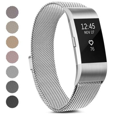The Meliya Metal Bands are sleek, stainless steel wristbands designed to perfectly fit the Fitbit Charge 2. The magnetic lock replacement bands are available in small and large sizes, suitable for a range of wrist sizes. Made of premium woven stainless steel mesh metal, these bands are both stylish and comfortable for everyday use or dressier occasions. The safety buckle allows for infinite adjustment, and the bands come with a strong magnetic clasp for secure wearing. However, some users have noted that lighter-colored bands tend to look dirty over time and that the bands can snag clothing.
