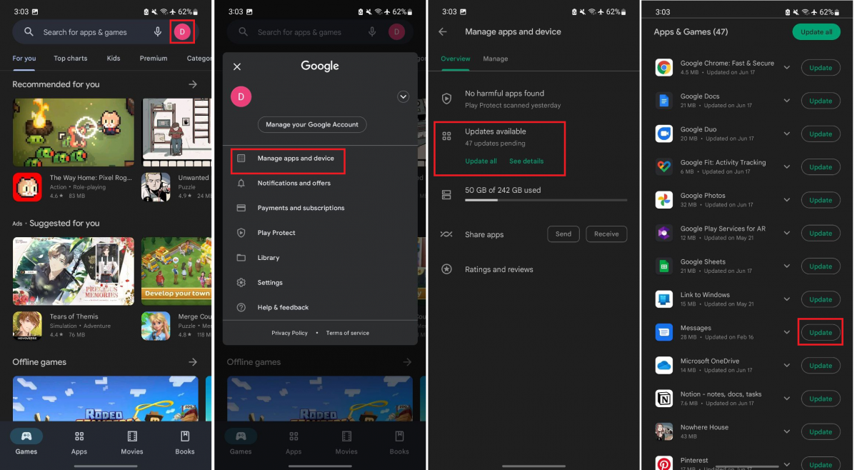 Using an outdated version of your messaging app is another possible reason why Samsung is sending duplicate text messages. To solve the issue, you simply need to update the app. Here’s how: