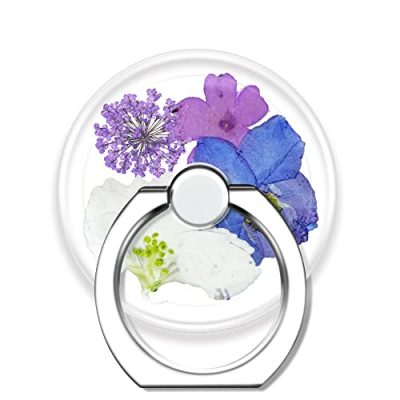 The TACOMEGE Purple Flower Clear Phone Grip is a stylish and functional accessory for your smartphone or tablet. Made from premium acrylic and metal, it is strong and durable. The beautiful violet print design is sealed with acrylic to ensure it never fades. It can be used as a holder grip to prevent devices from dropping, and as a kickstand for hands-free viewing. The 360° rotation and 180° flip allow for adjustable angles. Installation is easy with the adhesive backing. This phone ring stand is compatible with various devices, including iPhones, iPads, and Samsung Galaxy. It comes with one phone ring holder and offers excellent customer service for any issues that may arise.