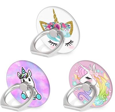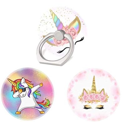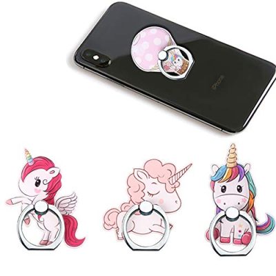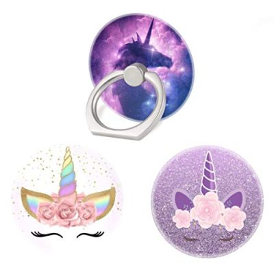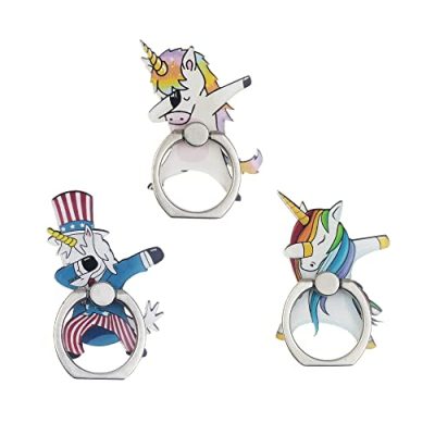 The Cell Phone Ring Holder is a 3-pack of 360-degree rotation universal pop grip stands designed to prevent phone drops and offer a convenient finger holder for smartphones and tablets. With wide compatibility, this phone ring holder can be used with almost all smartphones and mini tablets. The 360-degree rotation and 180-degree flipping feature allows for flexible adjustment of viewing angles in both landscape and portrait modes. The strong 3M adhesive provides a secure grip and is easy to install and remove from your phone. The reusable self-adhesive can be washed to restore adhesiveness. The cute unicorn design adds a touch of charm to your device. Overall, this phone ring holder offers versatility, convenience, and a reliable grip for your mobile devices.