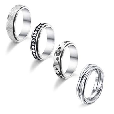 The sailimue 4 Pcs Stainless Steel Fidget Spinner Rings is a set of fashionable rings designed to relieve stress and anxiety. Made of high-quality 316l stainless steel, these rings are resistant to rust and feature a polished surface. With a rotating design, they can be slightly rotated when feeling anxious to help adjust mood and induce calmness. The set includes star and moon rings, simple band rings, knotted rings, and printed rings, making them suitable for everyday wear. Available in a range of sizes from 7-13, they can be worn by both men and women. Perfect as couple rings, wedding rings, engagement rings, band rings, or thumb rings, they make great gifts for friends, family, and loved ones. Overall, the sailimue Fidget Spinner Rings combine style and functionality to enhance mood and provide a fashionable distraction from stress and irritability.