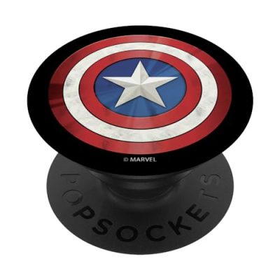 The Marvel Captain America Transforming Shield PopSockets PopGrip is the ultimate accessory for fans of the iconic superhero. This officially licensed PopSocket features a swappable grip that allows you to switch out the top design or remove it completely for wireless charging. The expandable stand lets you watch videos, take group photos, and video chat hands-free. With advanced adhesive, you can easily remove and reposition it on most devices and cases. Please note that it may not stick to silicone, waterproof, or highly textured cases. The PopSocket is available in a sleek black color and has dimensions of 1.60Lx0.50Wx0.30H. Customers have given it a rating of 4.6 out of 5, praising its cute design and durability. However, some users have mentioned that it may not stick well to certain types of cases. Overall, the Marvel Captain America Transforming Shield PopSockets PopGrip is a stylish and functional accessory for any Marvel fan.