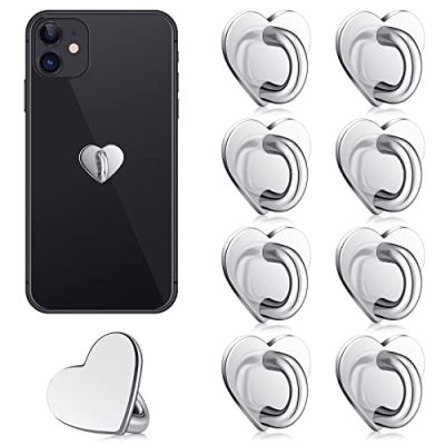 The 8 Pcs Cell Phone Finger Ring Adhesive Metal Phone Finger Grip Loop Stand Heart Grip Holder is a charming and reliable accessory for your phone. Made of quality metal materials with an electroplated surface, it is sturdy and long-lasting. The heart-shaped appearance adds a touch of beauty and uniqueness to your phone case. The adhesive bottom sticker allows for easy installation and can be applied to any flat surface. With 8 rings and a variety of colors, you can decorate your phone according to your preference. It also doubles as a phone holder. Overall, this phone finger ring grip is a stylish and convenient accessory for your mobile device.
